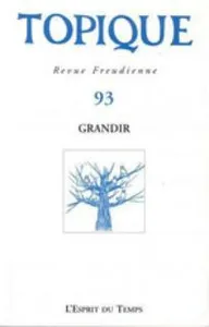 Grandir n<sup>o</sup> 93, 2005/4 - pagesPages 5 à 5Avant-proposPar Sophie de Mijolla-MellorPages 7 à 22Grandir jusqu'à la mort ? Par Michelle Moreau RicaudPages 23 à 31Grandir : de l'achèvement à l'inachèvementPar Guy RogerPages 33 à 49Le temps de grandir Par Bibiana MazaPages 51 à 62Etre solidaires pour « faire grandir les enfants ». Par Joëlle BordetPages 63 à 72L'effort pour ne pas grandir. Par Marie-Claude SuantPages 73 à 78Vers une esthétique du non grandir : de la souffrance du désir au désir du nostosPar Chantal BrunotPages 79 à 90Les humours adolescentes Par Jean-Pierre KamieniakPages 91 à 103L'enfant jumeau et son devenir. Par Florian Houssier