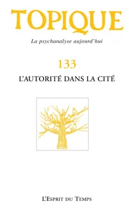 L'autorité dans la cité n° 133, 2015/4 - pagesPages 5 à 5ÉditorialPar Sophie de Mijolla-MellorPages 7 à 22Amour du leader et autorité du politiquePar Sophie de Mijolla-MellorPages 23 à 32L’autorité de la voix dans le discours politiquePar Dominique FessaguetPages 33 à 45L’autorité dans la citéPar Angélique ChristakiPages 47 à 53Mauvaises langues et paroles d’autoritéPar Sydney LevyPages 55 à 64Un défi démocratique : la quête d’autorité et de reconnaissance des jeunes hommes des quartiers populairesPar Joëlle BordetPages 65 à 79D’une perversion de l’autorité dans le langage : ces langues qui coupent la penséePar Laurence AubryPages 81 à 94Déclin de l’autorité : défaite du Symbolique ou commémoration du meurtre du Père ?Par Zaineb HamidiPages 95 à 105La religion en tant que référence et source d’autorité, de la Révolution française à la IIIe RépubliquePar Brigitte DemeurePages 107 à 114Le théologico-politique aujourd’huiPar Michèle BertrandPages 115 à 127Le théologico-politique aujourd’huiPar Saïd BellakhdarPages 129 à 139La belle mort de Moshe RabbenouPar François ArdevenPages 141 à 149Le regard dans la cure psychanalytique. Interdiction ou répression ?Par Berta Roth