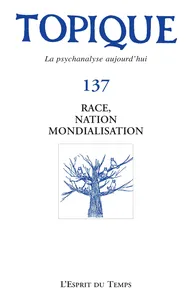 Race, nation, mondialisation n° 137, 2016/4 - pagesPages 5 à 5ÉditorialPar Sophie de Mijolla-MellorPages 7 à 18Corporéité et race : l’histoire abrégée d’une construction et de ses fonctions usuellesPar El Hadji Ibrahima DiopPages 19 à 30L’impensé d’un humanisme, l’autre paradoxe de Condorcet. Considérations autour des Réflexions sur l’esclavage des NègresPar Mamadou Kabirou GanoPages 31 à 45Transfiguration socioculturelle à l’École normale William Ponty, prélude du panafricanismePar Boubacar NianePages 47 à 55L’arrogance du préjugé racistePar Sophie de Mijolla-MellorPages 57 à 67Citoyenneté ou identité nationale : l’identité des citoyens du monde et des sans domicile fixePar Ségolène PayanPages 69 à 82Les jeunes des quartiers populaires : affirmer « être musulman », en réaction à la stigmatisation, dans un contexte de mondialisationPar Joëlle BordetPages 83 à 93Race et nation : de l’imaginaire féodal aux livres d’école de la IIIe RépubliquePar Brigitte DemeurePages 95 à 108Vers l’effacement de l’agorá : enjeux sociaux et cliniquesPar Maxence SmaniottoPages 109 à 120Esquisse d’une métapsychologie de l’identitéPar Philippe DrweskiPages 121 à 136Naturalisation de la différence en tant que race et quelques symptômes du racisme à la lumière de la psychanalysePar Marcelo Bafica Coelho, Marília Etienne ArreguyPages 137 à 145L’unique rive de la MéditerranéePar Antoine Courban