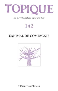 L'animal de compagnie n° 142, 2018/1 - pagesPages 5 à 5ÉditorialPar Sophie de Mijolla-MellorPages 7 à 14L’animal : le plus proche, le plus lointainPar Sandrine WillemsPages 15 à 29L’animal dit « de compagnie »Par Sophie de Mijolla-MellorPages 31 à 42Le chien, une figure de compagnon polyvalentPar Jean-Marie BrohmPages 43 à 52Le vétérinaire, l’animal et son maîtrePar Jean-François Bardet, interview par Sophie de Mijolla-Mellor, Sylvie Rubiliani-LennePages 53 à 67La relation de l’homme au chien familier : symptôme de sa dynamique psychique ?Par Christel Elies, Silke SchauderPages 69 à 78Dialogues intimes, conversation avec les bêtesPar Sylvie Rubiliani-LennePages 79 à 91L’animal, le psychanalyste et l’analysantPar Jean-Pierre KamieniakPages 93 à 101La chatte et le psychanalyste (Le cas Colette)Par François ArdevenPages 103 à 106Mon cothérapeute chatPar André BroussellePages 107 à 120L’animal de compagnie comme médiateurPar Stefano MonzaniPages 121 à 134La relation homme-animal au nouage de la médiation thérapeutique avec le chevalPar Charlotte BouillonPages 135 à 146Comme un chien dans un cimetière ou les raisons d’un amourPar Fabienne-Charlotte LeleuxPages 147 à 162« Malwâââ... », le nom de la frontièrePar Anne Vernet